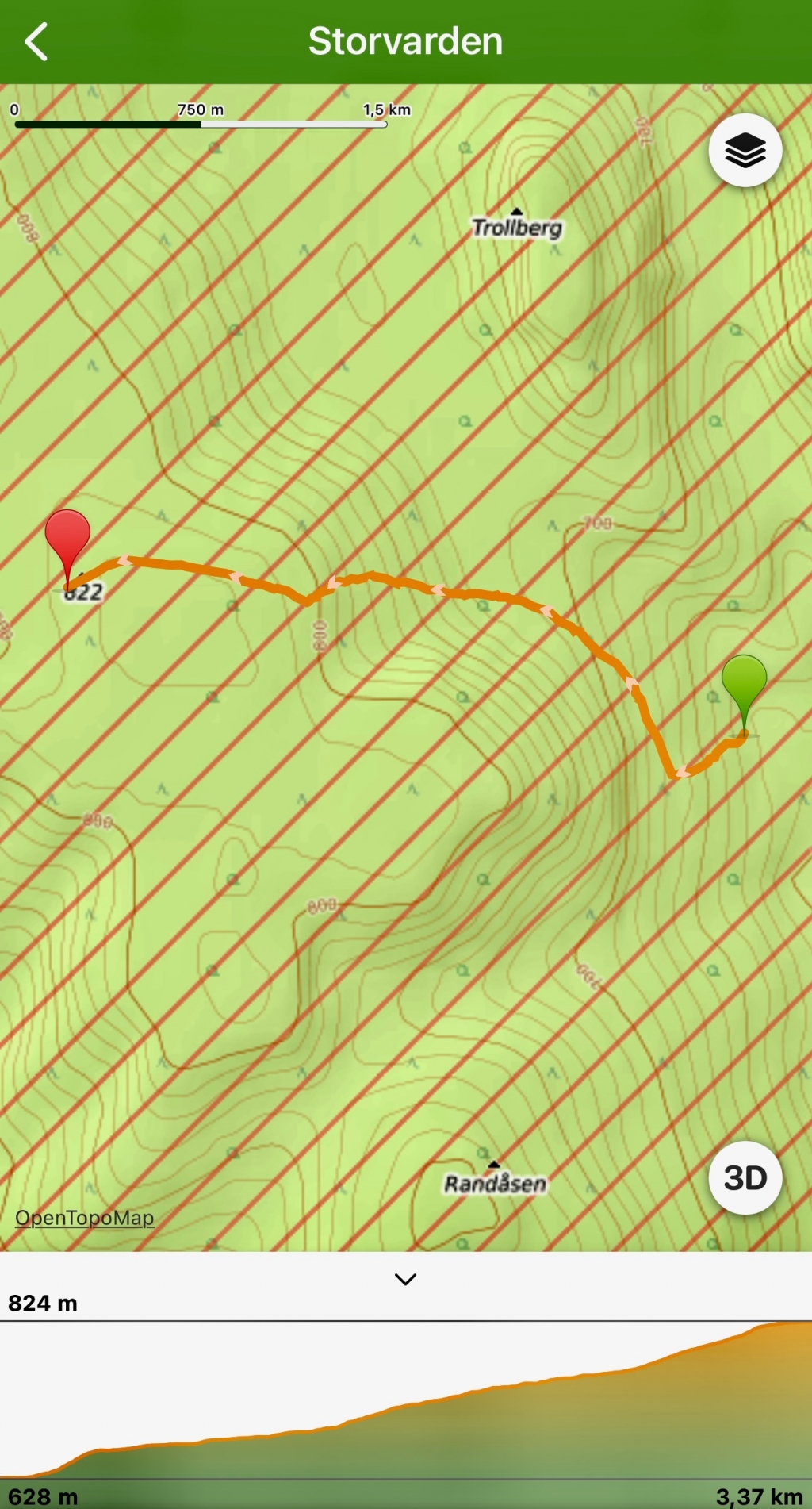 Terräng: Blandad terräng, fuktigt ibland, motlut naturligtvis. Men inte avskräckande. Stigning ca 200 m till 822 m.ö.h.